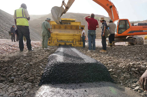 埃塞俄比亚旱季酷热的风扑打着人们的面庞,也映衬了沥青混凝土芯墙现场火热的施工厂景。自从2015年3月6日签署条约以来,Wolkite沥青混凝土项目施工紧锣密鼓,在举行了大宗实验和前期准备的基础上,取得了实质性希望,阻止5月15日已完成从804m高程至816m高程的填筑,余下事情正有序举行。