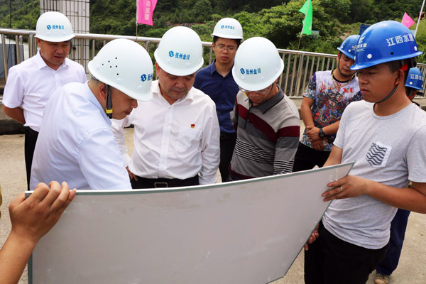 上饶市人大常委会副主任、鄱阳县县委书记张祯祥一行调研廖坊水利枢纽灌区二期工程